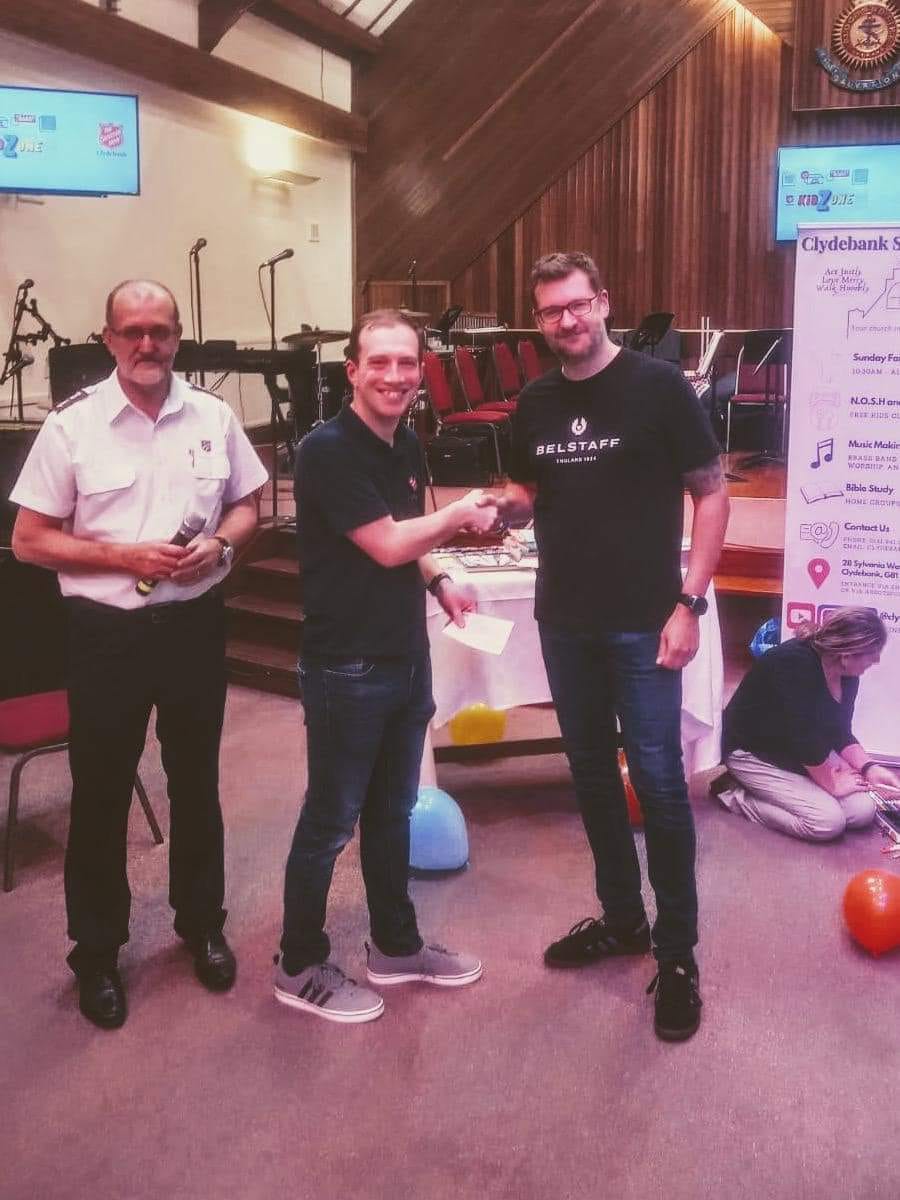 RWM Bro Andrew Mclean had much pleasure in presenting a cheque for £200 from The Gael to Clydebank Salvation Army in June 2024, to support their KidZone club. This takes young children from the local community into the church for fun and games and some food.